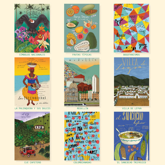 Paquete de cinco postales de los platos típicos de Colombia