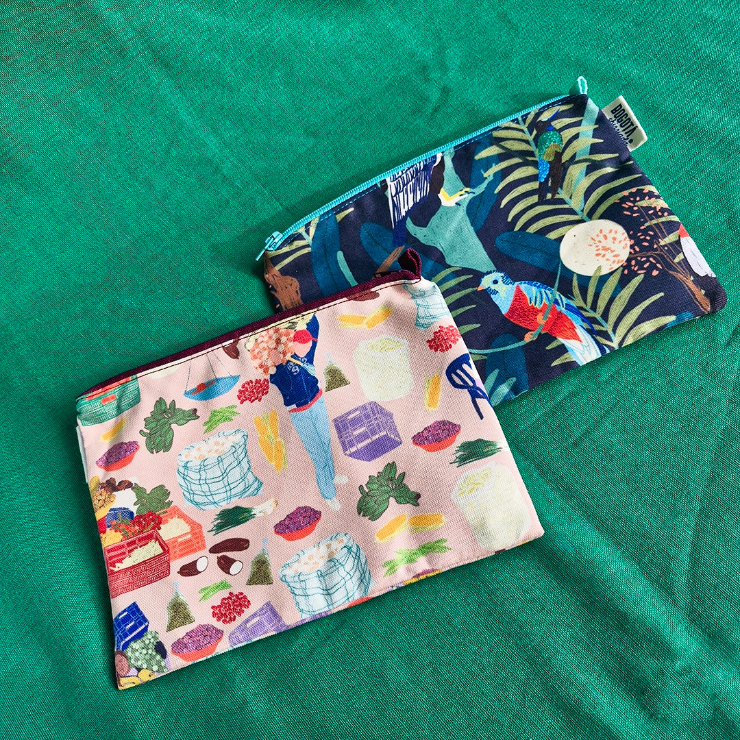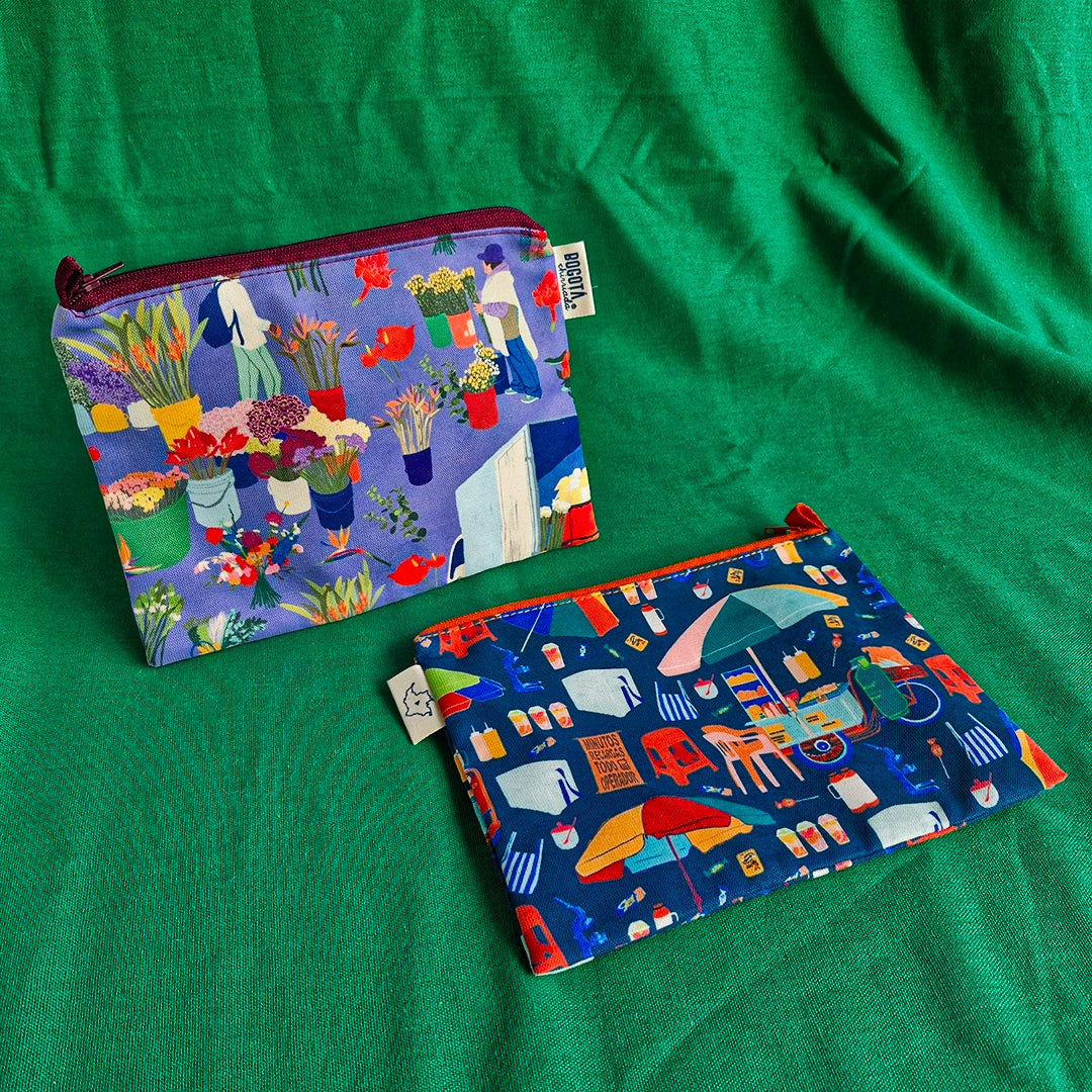 Este par de cartucheras ilustradas es perfecto para quienes siempre quieren tener sus chécheres organizados y con estilo. Cada una lleva un diseño único inspirado en la cultura popular colombiana, con ilustraciones llenas de color y tradición.
